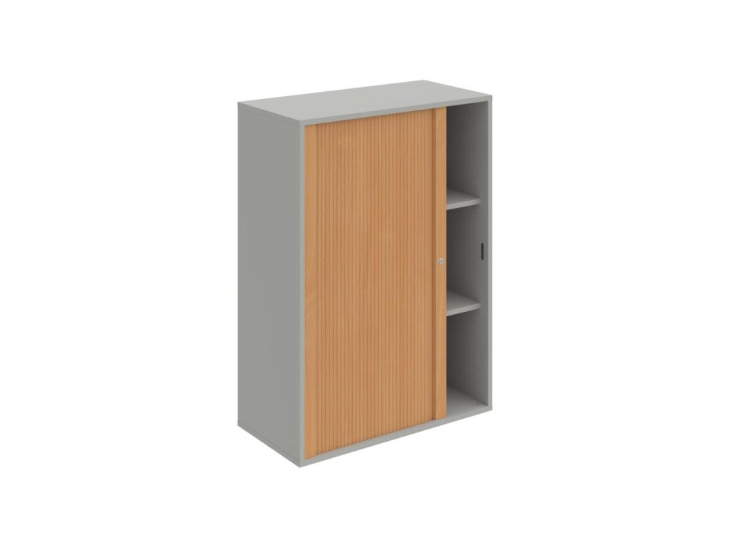 Policová skriňa Drive, 80x111x40 cm, buk/sivá, zámok