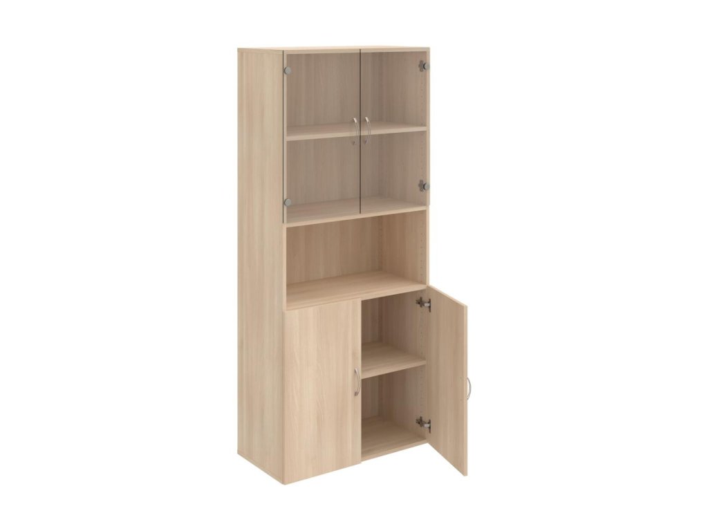 Kombinovaná skriňa - dvere/nika. Dôraz na funkčnosť a cenu. Kvalita a variabilita s nízkymi obstarávacími nákladmi. Materiály výrobcov z Európskej únie. Obojstranne pohľadový chrbát. Zabezpečenie políc proti náhodnému vysunutiu. 45 rôznych prvkov pre Vaše potreby a požiadavky. V našej ponuke nájdete skriňové moduly výšky 185 cm, 111 cm alebo 74 cm a šírky 80 cm alebo 40 cm. Hĺbka všetkých modelov skríň radu Drive je 40 cm (42 cm s dverami). Chrbát, vyrobený z 3 mm hrubých dosiek HDF, je obojstranne pohľadový, takže skrine môžete použiť ako priestorový deliaci prvok. Vďaka polohovateľným policiam (hrúbky 18 mm) je možné priestor prispôsobiť Vašim predstavám. Základná výška úložného priestoru je prispôsobená výške štandardného šanónu. Dvere sú chránené 2mm hranou ABS a osadené kvalitným kovaním s doživotnou zárukou. Okrem plných a presklených dverí Vám ponúkame aj skrine s roletovým systémom. Pokiaľ sa rozhodnete pre umiestnenie skríň na podlahu, nezabudnite si doobjednať rektifikačné nohy, ktoré nie sú štandardnou súčasťou objednávky. Aby sa zásielka dostala v poriadku až do Vašej kancelárie, dodávame skrine demontované v niekoľkých samostatných a bezpečne zabalených balíkoch. Súčasťou každého balenia je tiež prehľadný návod. Na skrive Drive dostanete záruku 5 rokov.
