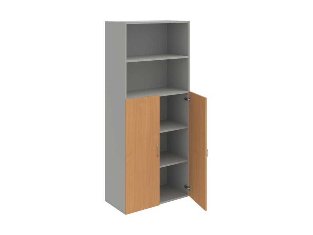 Kombinovaná skriňa - dvere/nika. Dôraz na funkčnosť a cenu. Kvalita a variabilita s nízkymi obstarávacími nákladmi. Materiály výrobcov z Európskej únie. Obojstranne pohľadový chrbát. Zabezpečenie políc proti náhodnému vysunutiu. 45 rôznych prvkov pre Vaše potreby a požiadavky. V našej ponuke nájdete skriňové moduly výšky 185 cm, 111 cm alebo 74 cm a šírky 80 cm alebo 40 cm. Hĺbka všetkých modelov skríň radu Drive je 40 cm (42 cm s dverami). Chrbát, vyrobený z 3 mm hrubých dosiek HDF, je obojstranne pohľadový, takže skrine môžete použiť ako priestorový deliaci prvok. Vďaka polohovateľným policiam (hrúbky 18 mm) je možné priestor prispôsobiť Vašim predstavám. Základná výška úložného priestoru je prispôsobená výške štandardného šanónu. Dvere sú chránené 2mm hranou ABS a osadené kvalitným kovaním s doživotnou zárukou. Okrem plných a presklených dverí Vám ponúkame aj skrine s roletovým systémom. Pokiaľ sa rozhodnete pre umiestnenie skríň na podlahu, nezabudnite si doobjednať rektifikačné nohy, ktoré nie sú štandardnou súčasťou objednávky. Aby sa zásielka dostala v poriadku až do Vašej kancelárie, dodávame skrine demontované v niekoľkých samostatných a bezpečne zabalených balíkoch. Súčasťou každého balenia je tiež prehľadný návod. Na skrive Drive dostanete záruku 5 rokov.