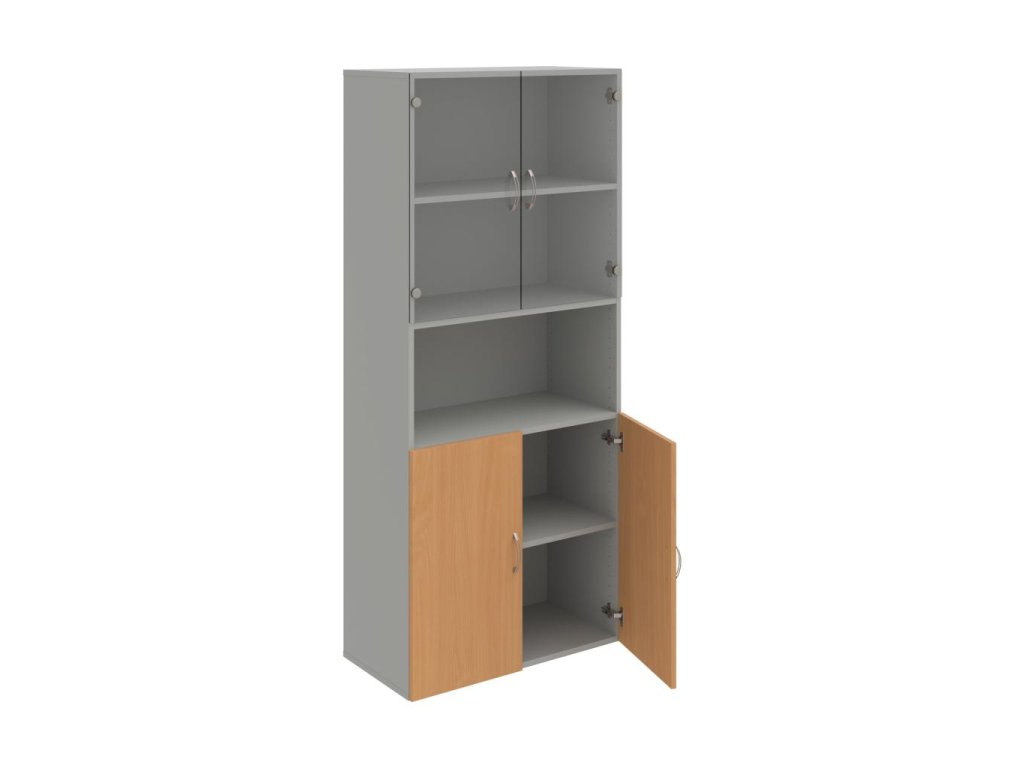 Kombinovaná skriňa - dvere/nika. Dôraz na funkčnosť a cenu. Kvalita a variabilita s nízkymi obstarávacími nákladmi. Materiály výrobcov z Európskej únie. Obojstranne pohľadový chrbát. Zabezpečenie políc proti náhodnému vysunutiu. 45 rôznych prvkov pre Vaše potreby a požiadavky. V našej ponuke nájdete skriňové moduly výšky 185 cm, 111 cm alebo 74 cm a šírky 80 cm alebo 40 cm. Hĺbka všetkých modelov skríň radu Drive je 40 cm (42 cm s dverami). Chrbát, vyrobený z 3 mm hrubých dosiek HDF, je obojstranne pohľadový, takže skrine môžete použiť ako priestorový deliaci prvok. Vďaka polohovateľným policiam (hrúbky 18 mm) je možné priestor prispôsobiť Vašim predstavám. Základná výška úložného priestoru je prispôsobená výške štandardného šanónu. Dvere sú chránené 2mm hranou ABS a osadené kvalitným kovaním s doživotnou zárukou. Okrem plných a presklených dverí Vám ponúkame aj skrine s roletovým systémom. Pokiaľ sa rozhodnete pre umiestnenie skríň na podlahu, nezabudnite si doobjednať rektifikačné nohy, ktoré nie sú štandardnou súčasťou objednávky. Aby sa zásielka dostala v poriadku až do Vašej kancelárie, dodávame skrine demontované v niekoľkých samostatných a bezpečne zabalených balíkoch. Súčasťou každého balenia je tiež prehľadný návod. Na skrive Drive dostanete záruku 5 rokov.
