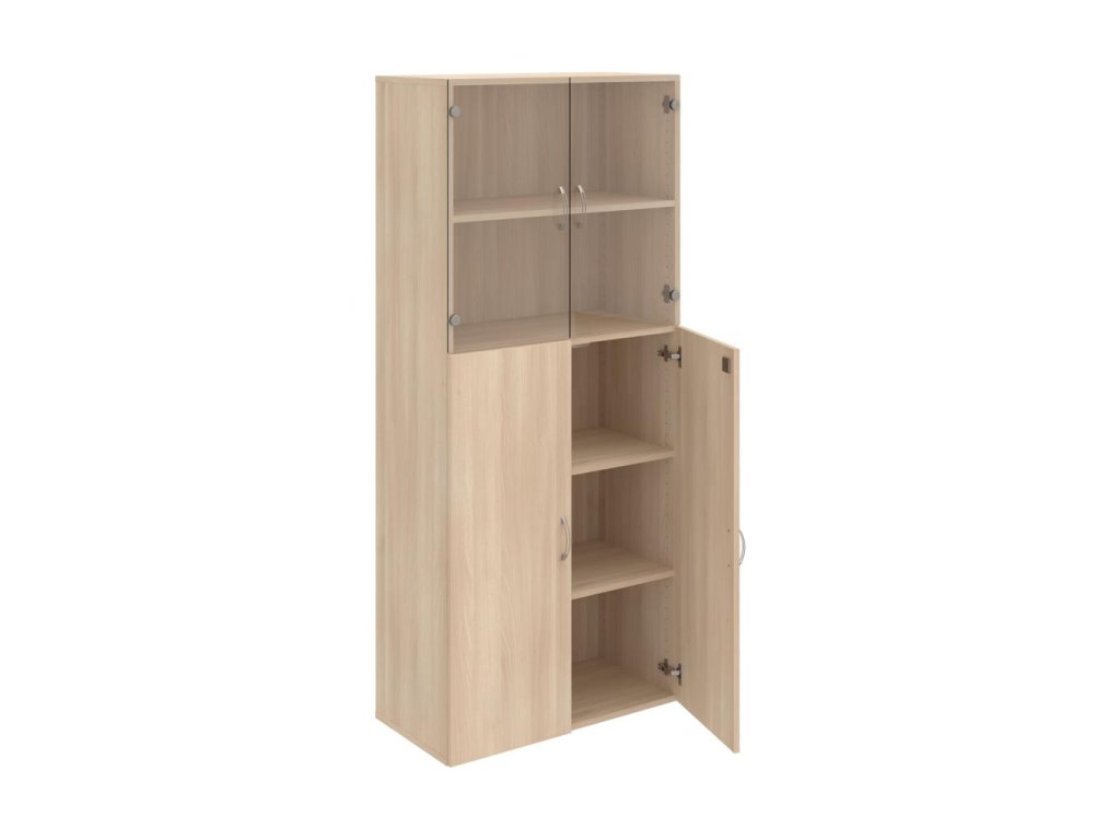 Kombinovaná skriňa - dvere/nika. Dôraz na funkčnosť a cenu. Kvalita a variabilita s nízkymi obstarávacími nákladmi. Materiály výrobcov z Európskej únie. Obojstranne pohľadový chrbát. Zabezpečenie políc proti náhodnému vysunutiu. 45 rôznych prvkov pre Vaše potreby a požiadavky. V našej ponuke nájdete skriňové moduly výšky 185 cm, 111 cm alebo 74 cm a šírky 80 cm alebo 40 cm. Hĺbka všetkých modelov skríň radu Drive je 40 cm (42 cm s dverami). Chrbát, vyrobený z 3 mm hrubých dosiek HDF, je obojstranne pohľadový, takže skrine môžete použiť ako priestorový deliaci prvok. Vďaka polohovateľným policiam (hrúbky 18 mm) je možné priestor prispôsobiť Vašim predstavám. Základná výška úložného priestoru je prispôsobená výške štandardného šanónu. Dvere sú chránené 2mm hranou ABS a osadené kvalitným kovaním s doživotnou zárukou. Okrem plných a presklených dverí Vám ponúkame aj skrine s roletovým systémom. Pokiaľ sa rozhodnete pre umiestnenie skríň na podlahu, nezabudnite si doobjednať rektifikačné nohy, ktoré nie sú štandardnou súčasťou objednávky. Aby sa zásielka dostala v poriadku až do Vašej kancelárie, dodávame skrine demontované v niekoľkých samostatných a bezpečne zabalených balíkoch. Súčasťou každého balenia je tiež prehľadný návod. Na skrive Drive dostanete záruku 5 rokov.