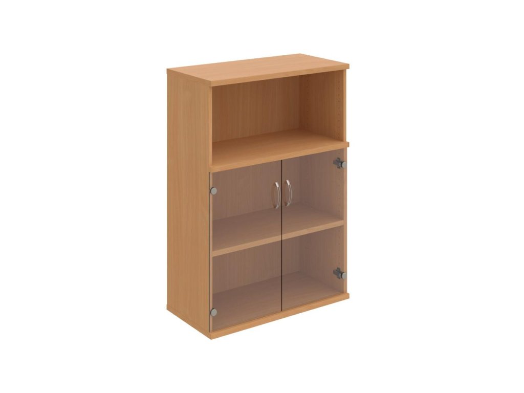 Kombinovaná skriňa - dvere/nika. Kancelárske skrine STRONG majú robustnú konštrukciu a vyššiu nosnosť políc ako bežné kancelárske skrine.V ponuke sú skriňové moduly s výškou 185 cm, 111 cm alebo 74 cm a šírky 80 cm alebo 40 cm. Hĺbka všetkých modelov skriňového radu STRONG je 40 cm.Chrbát, vyrobený z 8 mm hrubých dosák, je obojstranne pohľadový, takže skrine môžete použiť ako priestorový deliaci prvok. Hrúbka samotných políc je 25 mm, čo znamená nosnosť 80 kg na 1 policu.Korpusy, dvierka a police skríň sú olepené odolnou 2mm ABS hranou, ktorá garantuje dostatočnú ochranu proti poškodeniu.