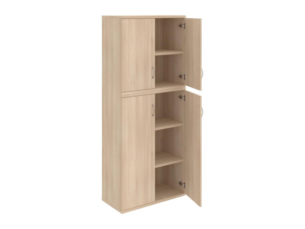 Kombinovaná skriňa - dvere/nika. Kancelárske skrine STRONG majú robustnú konštrukciu a vyššiu nosnosť políc ako bežné kancelárske skrine.V ponuke sú skriňové moduly s výškou 185 cm, 111 cm alebo 74 cm a šírky 80 cm alebo 40 cm.Hĺbka všetkých modelov skriňového radu STRONG je 40 cm.Chrbát, vyrobený z 8 mm hrubých dosák, je obojstranne pohľadový, takže skrine môžete použiť ako priestorový deliaci prvok. Hrúbka samotných políc je 25 mm, čo znamená nosnosť 80 kg na 1 policu.Korpusy, dvierka a police skríň sú olepené odolnou 2mm ABS hranou, ktorá garantuje dostatočnú ochranu proti poškodeniu.