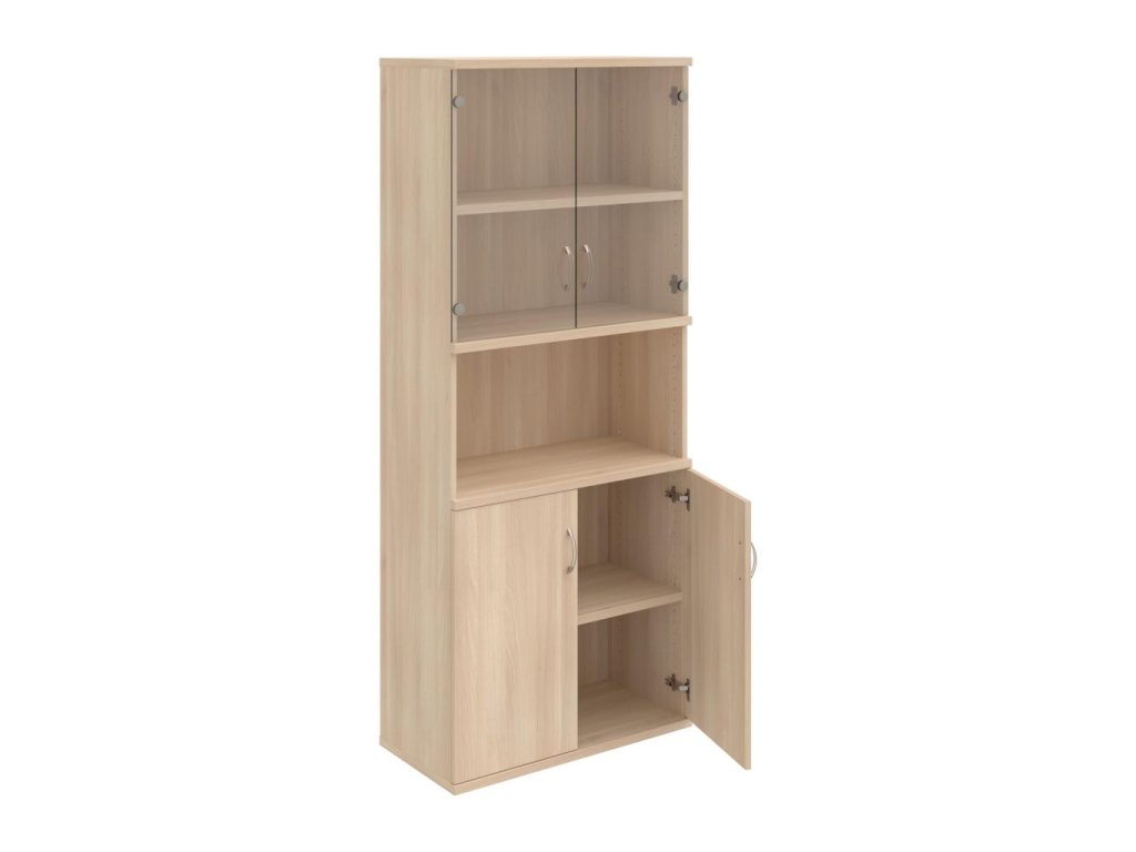 Kombinovaná skriňa - dvere/nika. Kancelárske skrine STRONG majú robustnú konštrukciu a vyššiu nosnosť políc ako bežné kancelárske skrine.V ponuke sú skriňové moduly s výškou 185 cm, 111 cm alebo 74 cm a šírky 80 cm alebo 40 cm. Hĺbka všetkých modelov skriňového radu STRONG je 40 cm.Chrbát, vyrobený z 8 mm hrubých dosák, je obojstranne pohľadový, takže skrine môžete použiť ako priestorový deliaci prvok. Hrúbka samotných políc je 25 mm, čo znamená nosnosť 80 kg na 1 policu.Korpusy, dvierka a police skríň sú olepené odolnou 2mm ABS hranou, ktorá garantuje dostatočnú ochranu proti poškodeniu.