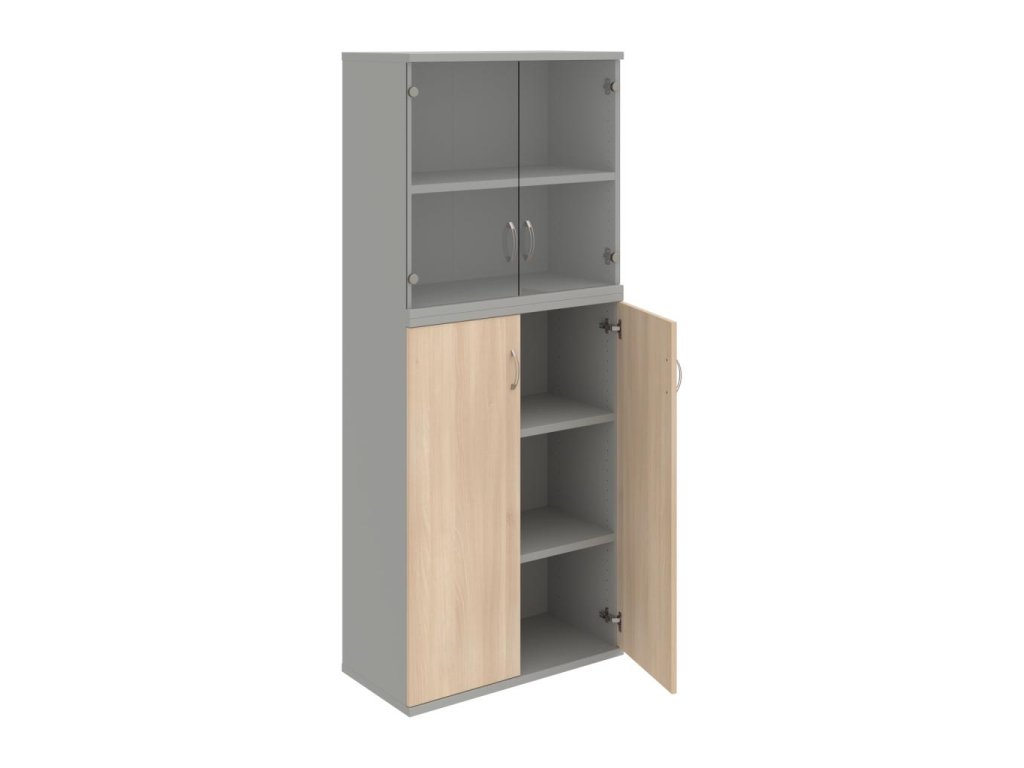 Kombinovaná skriňa - dvere/nika. Kancelárske skrine STRONG majú robustnú konštrukciu a vyššiu nosnosť políc ako bežné kancelárske skrine.V ponuke sú skriňové moduly s výškou 185 cm, 111 cm alebo 74 cm a šírky 80 cm alebo 40 cm. Hĺbka všetkých modelov skriňového radu STRONG je 40 cm.Chrbát, vyrobený z 8 mm hrubých dosák, je obojstranne pohľadový, takže skrine môžete použiť ako priestorový deliaci prvok. Hrúbka samotných políc je 25 mm, čo znamená nosnosť 80 kg na 1 policu.Korpusy, dvierka a police skríň sú olepené odolnou 2mm ABS hranou, ktorá garantuje dostatočnú ochranu proti poškodeniu.