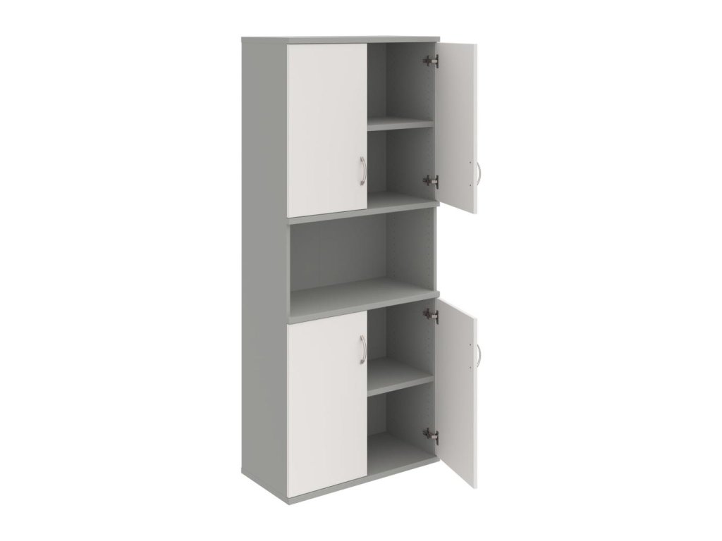 Kombinovaná skriňa - dvere/nika. Kancelárske skrine STRONG majú robustnú konštrukciu a vyššiu nosnosť políc ako bežné kancelárske skrine.V ponuke sú skriňové moduly s výškou 185 cm, 111 cm alebo 74 cm a šírky 80 cm alebo 40 cm.Hĺbka všetkých modelov skriňového radu STRONG je 40 cm.Chrbát, vyrobený z 8 mm hrubých dosák, je obojstranne pohľadový, takže skrine môžete použiť ako priestorový deliaci prvok. Hrúbka samotných políc je 25 mm, čo znamená nosnosť 80 kg na 1 policu.Korpusy, dvierka a police skríň sú olepené odolnou 2mm ABS hranou, ktorá garantuje dostatočnú ochranu proti poškodeniu.
