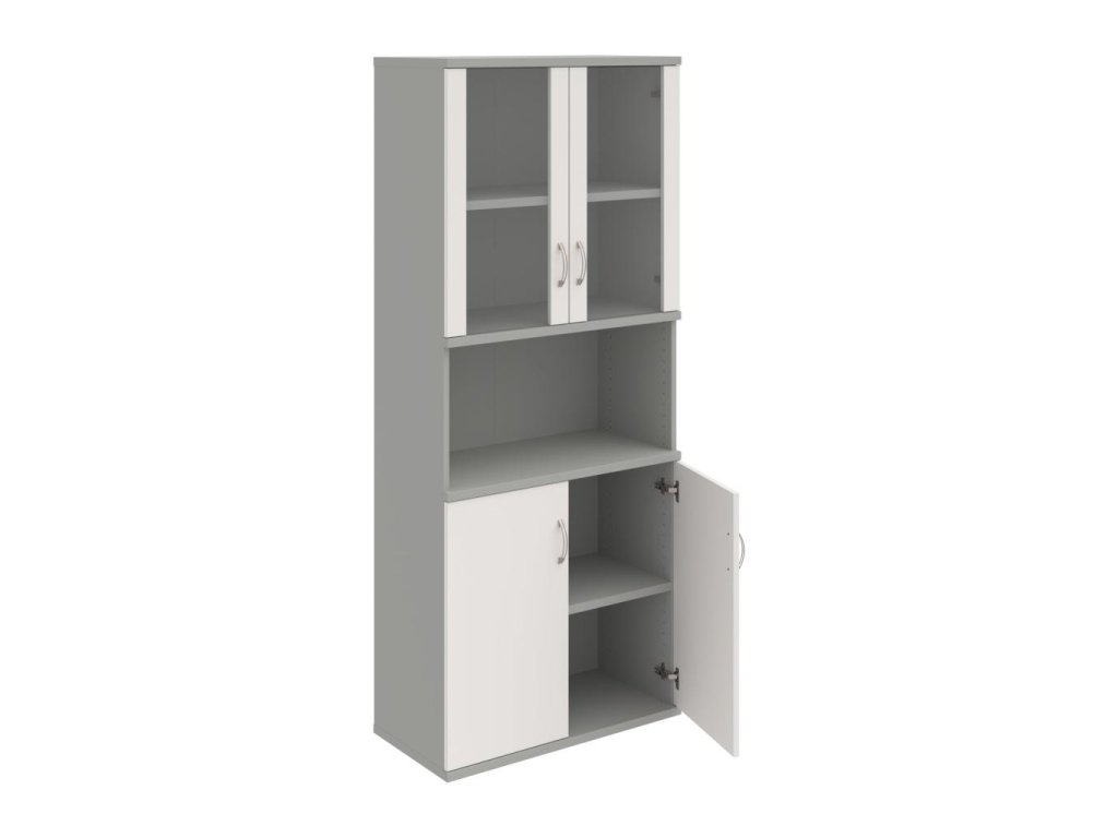 Kombinovaná skriňa - dvere/nika. Kancelárske skrine STRONG majú robustnú konštrukciu a vyššiu nosnosť políc ako bežné kancelárske skrine.V ponuke sú skriňové moduly s výškou 185 cm, 111 cm alebo 74 cm a šírky 80 cm alebo 40 cm. Hĺbka všetkých modelov skriňového radu STRONG je 40 cm.Chrbát, vyrobený z 8 mm hrubých dosák, je obojstranne pohľadový, takže skrine môžete použiť ako priestorový deliaci prvok. Hrúbka samotných políc je 25 mm, čo znamená nosnosť 80 kg na 1 policu.Korpusy, dvierka a police skríň sú olepené odolnou 2mm ABS hranou, ktorá garantuje dostatočnú ochranu proti poškodeniu.