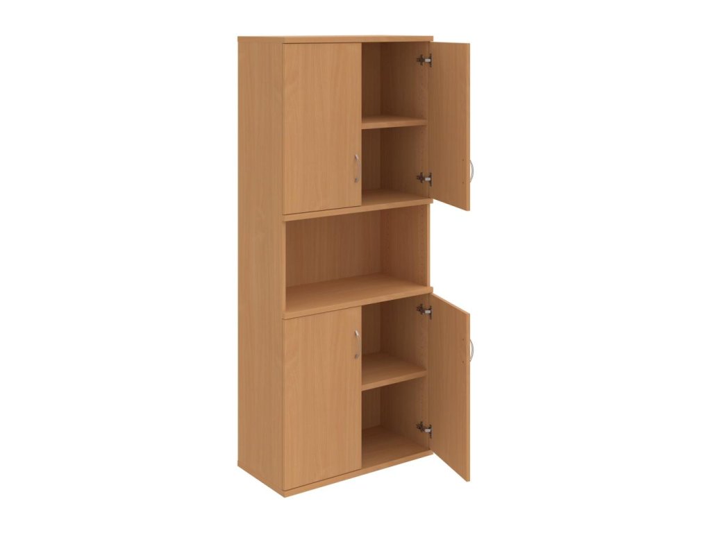 Kombinovaná skriňa - dvere/nika. Kancelárske skrine STRONG majú robustnú konštrukciu a vyššiu nosnosť políc ako bežné kancelárske skrine.V ponuke sú skriňové moduly s výškou 185 cm, 111 cm alebo 74 cm a šírky 80 cm alebo 40 cm.Hĺbka všetkých modelov skriňového radu STRONG je 40 cm.Chrbát, vyrobený z 8 mm hrubých dosák, je obojstranne pohľadový, takže skrine môžete použiť ako priestorový deliaci prvok. Hrúbka samotných políc je 25 mm, čo znamená nosnosť 80 kg na 1 policu.Korpusy, dvierka a police skríň sú olepené odolnou 2mm ABS hranou, ktorá garantuje dostatočnú ochranu proti poškodeniu.