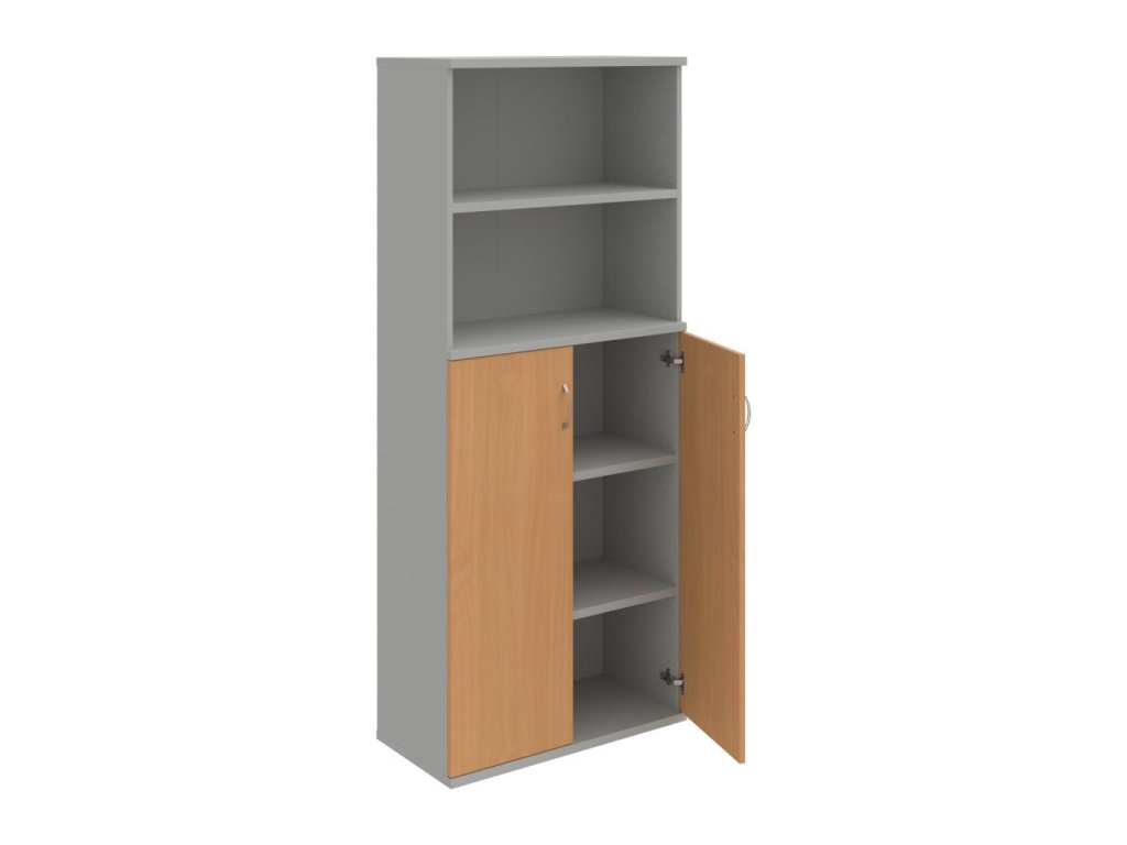 Kombinovaná skriňa - dvere/nika. Kancelárske skrine STRONG majú robustnú konštrukciu a vyššiu nosnosť políc ako bežné kancelárske skrine.V ponuke sú skriňové moduly s výškou 185 cm, 111 cm alebo 74 cm a šírky 80 cm alebo 40 cm.Hĺbka všetkých modelov skriňového radu STRONG je 40 cm.Chrbát, vyrobený z 8 mm hrubých dosák, je obojstranne pohľadový, takže skrine môžete použiť ako priestorový deliaci prvok. Hrúbka samotných políc je 25 mm, čo znamená nosnosť 80 kg na 1 policu.Korpusy, dvierka a police skríň sú olepené odolnou 2mm ABS hranou, ktorá garantuje dostatočnú ochranu proti poškodeniu.