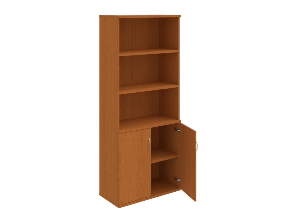 Kombinovaná skriňa - dvere/nika.Kancelárske skrine STRONG majú robustnú konštrukciu a vyššiu nosnosť políc ako bežné kancelárske skrine.V ponuke sú skriňové moduly s výškou 185 cm, 111 cm alebo 74 cm a šírky 80 cm alebo 40 cm.Hĺbka všetkých modelov skriňového radu STRONG je 40 cm.Chrbát, vyrobený z 8 mm hrubých dosák, je obojstranne pohľadový, takže skrine môžete použiť ako priestorový deliaci prvok. Hrúbka samotných políc je 25 mm, čo znamená nosnosť 80 kg na 1 policu.Korpusy, dvierka a police skríň sú olepené odolnou 2mm ABS hranou, ktorá garantuje dostatočnú ochranu proti poškodeniu.