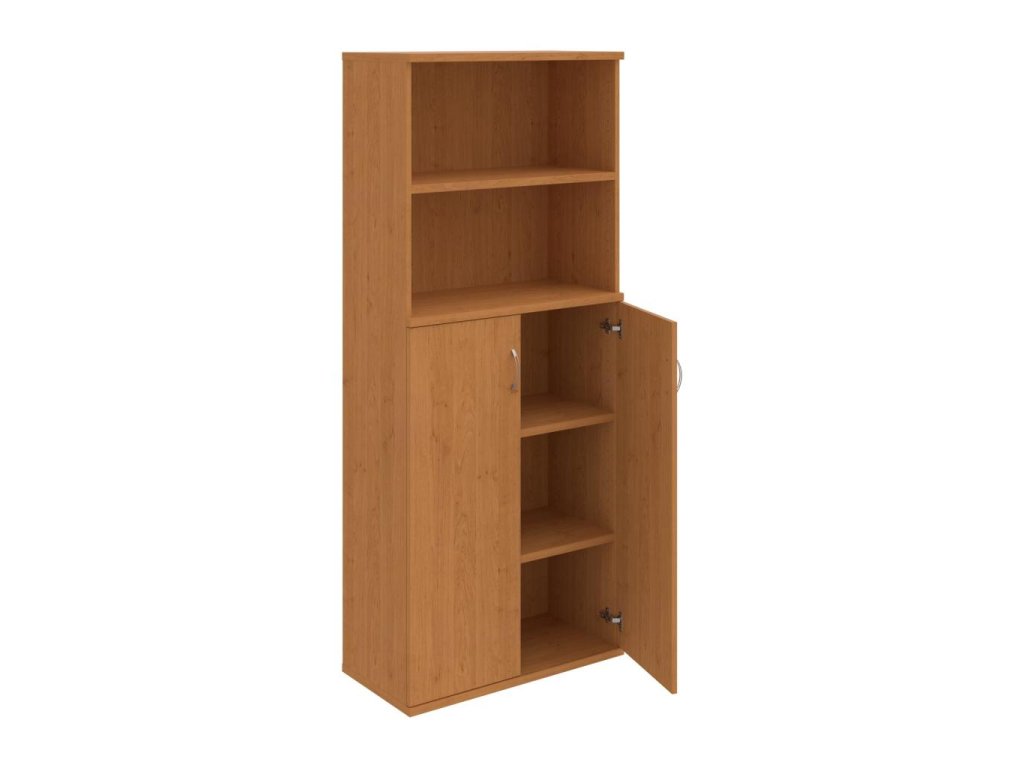 Kombinovaná skriňa - dvere/nika. Kancelárske skrine STRONG majú robustnú konštrukciu a vyššiu nosnosť políc ako bežné kancelárske skrine.V ponuke sú skriňové moduly s výškou 185 cm, 111 cm alebo 74 cm a šírky 80 cm alebo 40 cm.Hĺbka všetkých modelov skriňového radu STRONG je 40 cm.Chrbát, vyrobený z 8 mm hrubých dosák, je obojstranne pohľadový, takže skrine môžete použiť ako priestorový deliaci prvok. Hrúbka samotných políc je 25 mm, čo znamená nosnosť 80 kg na 1 policu.Korpusy, dvierka a police skríň sú olepené odolnou 2mm ABS hranou, ktorá garantuje dostatočnú ochranu proti poškodeniu.