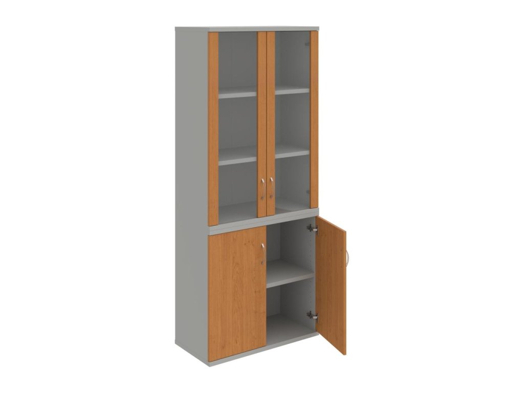 Kombinovaná skriňa - dvere/nika. Kancelárske skrine STRONG majú robustnú konštrukciu a vyššiu nosnosť políc ako bežné kancelárske skrine.V ponuke sú skriňové moduly s výškou 185 cm, 111 cm alebo 74 cm a šírky 80 cm alebo 40 cm. Hĺbka všetkých modelov skriňového radu STRONG je 40 cm.Chrbát, vyrobený z 8 mm hrubých dosák, je obojstranne pohľadový, takže skrine môžete použiť ako priestorový deliaci prvok. Hrúbka samotných políc je 25 mm, čo znamená nosnosť 80 kg na 1 policu.Korpusy, dvierka a police skríň sú olepené odolnou 2mm ABS hranou, ktorá garantuje dostatočnú ochranu proti poškodeniu.