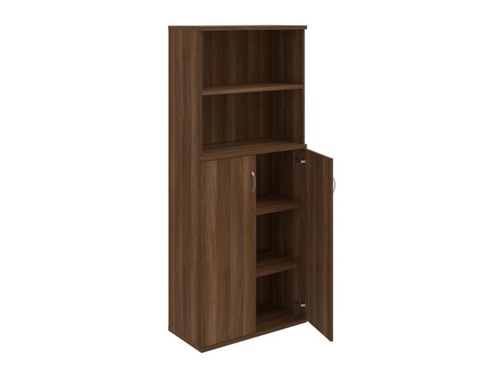 Kombinovaná skriňa - dvere/nika. Kancelárske skrine STRONG majú robustnú konštrukciu a vyššiu nosnosť políc ako bežné kancelárske skrine.V ponuke sú skriňové moduly s výškou 185 cm, 111 cm alebo 74 cm a šírky 80 cm alebo 40 cm.Hĺbka všetkých modelov skriňového radu STRONG je 40 cm.Chrbát, vyrobený z 8 mm hrubých dosák, je obojstranne pohľadový, takže skrine môžete použiť ako priestorový deliaci prvok. Hrúbka samotných políc je 25 mm, čo znamená nosnosť 80 kg na 1 policu.Korpusy, dvierka a police skríň sú olepené odolnou 2mm ABS hranou, ktorá garantuje dostatočnú ochranu proti poškodeniu.