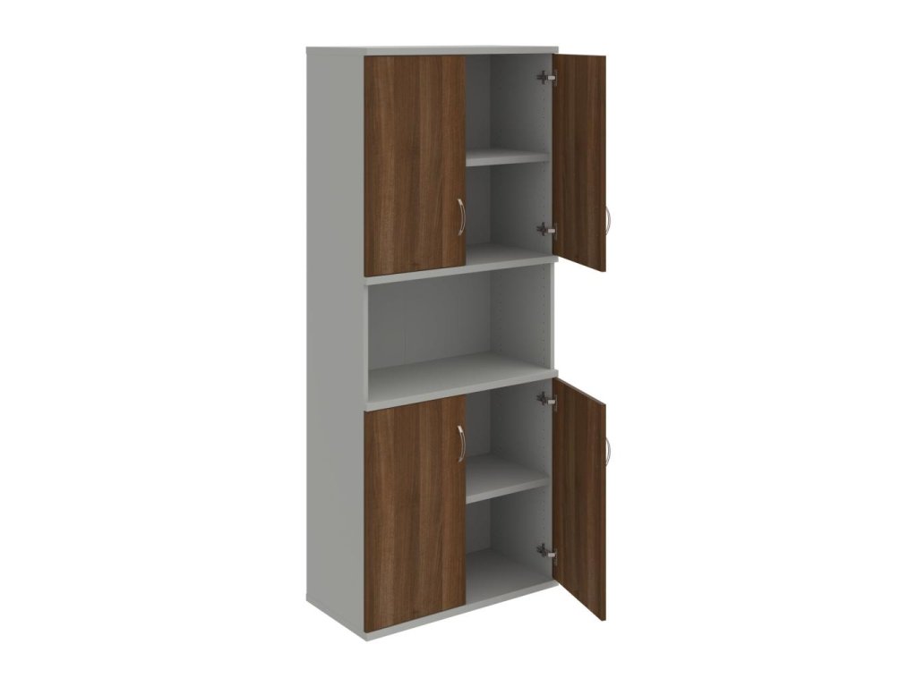 Kombinovaná skriňa - dvere/nika. Kancelárske skrine STRONG majú robustnú konštrukciu a vyššiu nosnosť políc ako bežné kancelárske skrine.V ponuke sú skriňové moduly s výškou 185 cm, 111 cm alebo 74 cm a šírky 80 cm alebo 40 cm.Hĺbka všetkých modelov skriňového radu STRONG je 40 cm.Chrbát, vyrobený z 8 mm hrubých dosák, je obojstranne pohľadový, takže skrine môžete použiť ako priestorový deliaci prvok. Hrúbka samotných políc je 25 mm, čo znamená nosnosť 80 kg na 1 policu.Korpusy, dvierka a police skríň sú olepené odolnou 2mm ABS hranou, ktorá garantuje dostatočnú ochranu proti poškodeniu.