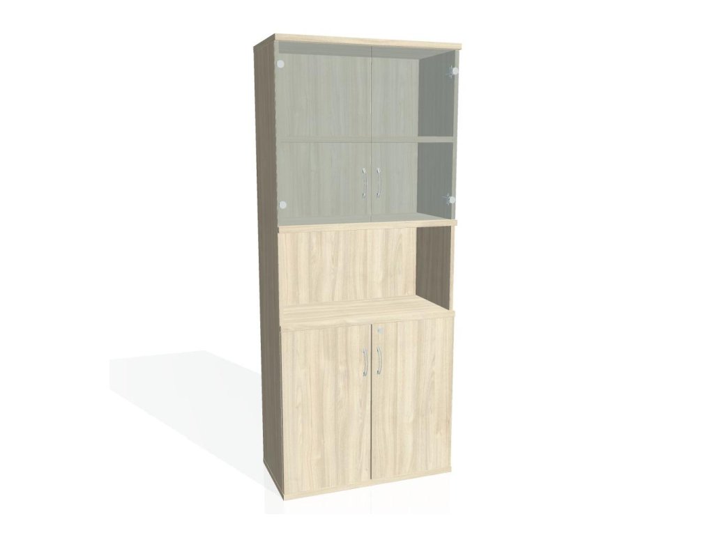 Kombinovaná skriňa - dvere/nika. Kancelárske skrine STRONG majú robustnú konštrukciu a vyššiu nosnosť políc ako bežné kancelárske skrine.V ponuke sú skriňové moduly s výškou 185 cm, 111 cm alebo 74 cm a šírky 80 cm alebo 40 cm. Hĺbka všetkých modelov skriňového radu STRONG je 40 cm.Chrbát, vyrobený z 8 mm hrubých dosák, je obojstranne pohľadový, takže skrine môžete použiť ako priestorový deliaci prvok. Hrúbka samotných políc je 25 mm, čo znamená nosnosť 80 kg na 1 policu.Korpusy, dvierka a police skríň sú olepené odolnou 2mm ABS hranou, ktorá garantuje dostatočnú ochranu proti poškodeniu.