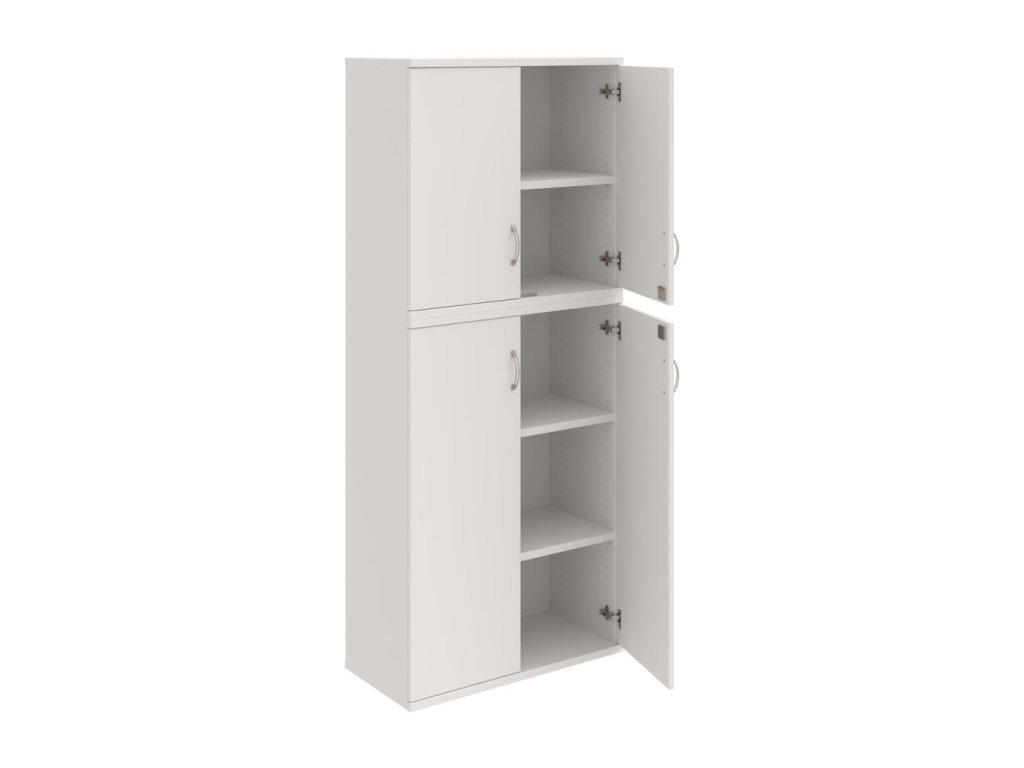 Kombinovaná skriňa - dvere/nika. Kancelárske skrine STRONG majú robustnú konštrukciu a vyššiu nosnosť políc ako bežné kancelárske skrine.V ponuke sú skriňové moduly s výškou 185 cm, 111 cm alebo 74 cm a šírky 80 cm alebo 40 cm. Hĺbka všetkých modelov skriňového radu STRONG je 40 cm.Chrbát, vyrobený z 8 mm hrubých dosák, je obojstranne pohľadový, takže skrine môžete použiť ako priestorový deliaci prvok. Hrúbka samotných políc je 25 mm, čo znamená nosnosť 80 kg na 1 policu.Korpusy, dvierka a police skríň sú olepené odolnou 2mm ABS hranou, ktorá garantuje dostatočnú ochranu proti poškodeniu.