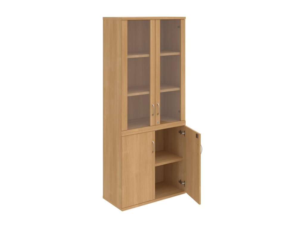 Kombinovaná skriňa - dvere/nika. Kancelárske skrine STRONG majú robustnú konštrukciu a vyššiu nosnosť políc ako bežné kancelárske skrine.V ponuke sú skriňové moduly s výškou 185 cm, 111 cm alebo 74 cm a šírky 80 cm alebo 40 cm. Hĺbka všetkých modelov skriňového radu STRONG je 40 cm.Chrbát, vyrobený z 8 mm hrubých dosák, je obojstranne pohľadový, takže skrine môžete použiť ako priestorový deliaci prvok. Hrúbka samotných políc je 25 mm, čo znamená nosnosť 80 kg na 1 policu.Korpusy, dvierka a police skríň sú olepené odolnou 2mm ABS hranou, ktorá garantuje dostatočnú ochranu proti poškodeniu.