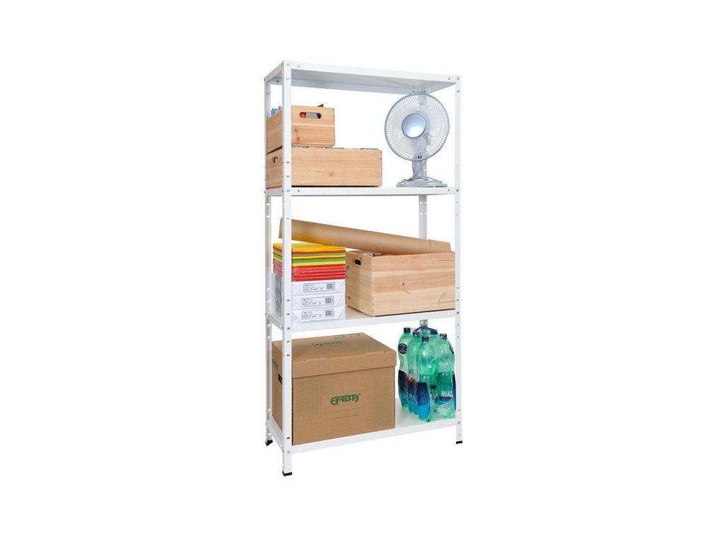 Policový regál, celokovový, v.150 x š.75 x h.30 cm, biely
