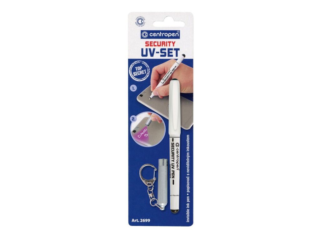 Permanentný popisovač s ergo držaním na označovanie cenných predmetov. Plnený špeciálnym atramentom, stopa písma je viditeľná iba pod UV lampou. V blistrovom balení popisovač a UV lampa. Okrúhly hrot, šírka stopy 0,6 - 1 mm. Väčšie balenie 10ks.