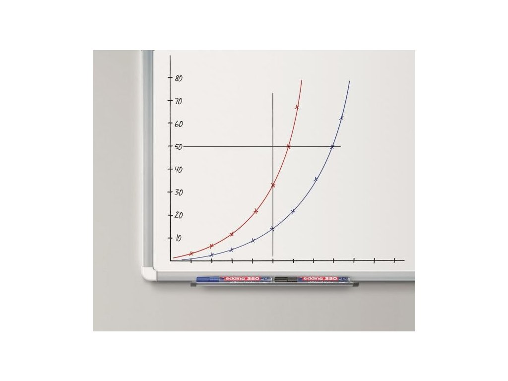 Popisovač na biele tabule, zasucha stierateľný. Plnený pigmentovým atramentom slabého zápachu bez prísady butylacetátu s vlastnosťou `Cap off`, zabraňujúcou vysychaniu atramentu pri otvorenom hrote aj niekoľko dní. Dopĺňateľný atramentom edding BT 30 alebo BTK 25. Hliníkové telo, vymeniteľný hrot. Hrot okrúhly, šírka stopy 1,5 - 3 mm. Dodávaný samostatne. Väčšie balenie 10 ks.
