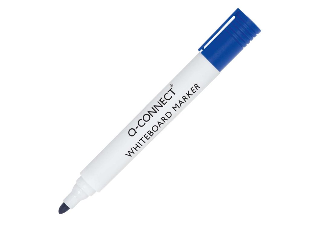 Popisovač na biele tabule. Telo plastové, klip. Hrot okrúhly, šírka stopy 1,5 - 3 mm. Väčšie balenie 10 ks v jednej farbe. Farba modrá.