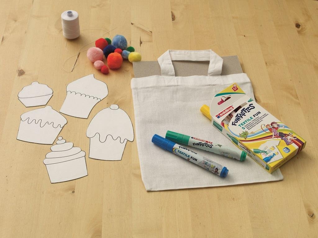 Detský popisovač na textil s okrúhlym hrotom. Plnený pigmentovým atramentom na báze vody s neutrálnym zápachom. Po zafixovaní farieb zažehlením (bez použitia pary) je možné farby prať až do teploty 60 °C. Dodávaný v sade 5 jasných farieb. Väčšie balenie 10 sád.