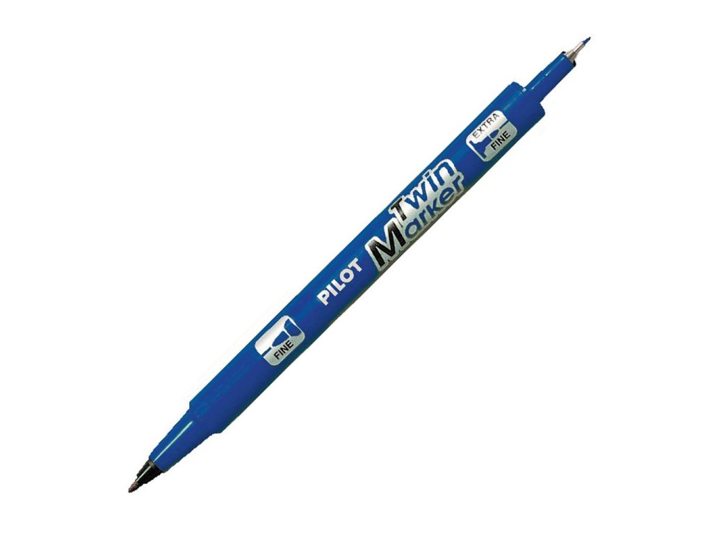 Twin Marker je popisovač, ktorý neobsahuje toxická rozpúšťadlá. Jeho rýchloschnúci, permanentný atrament je odolný proti vode a svetlu. Vysoko praktický dvojitý hrot umožňuje kombinovať dve doplňujúce sa veľkosti ťahov (strednej a široké). Twin Marker je súčasťou produktového radu Begreen. Väčšie balenie 4 sady. Farba modrá.