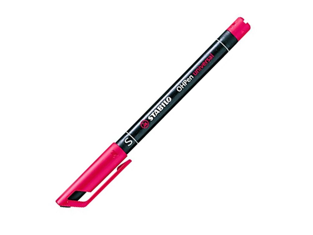 Permanentné popisovače na popisovanie takmer všetkých hladkých povrchov. Nekĺzavá úchytová zóna, praktický klip, bez vrchnáka vydrží až 3 dni. Väčšie balenie 10 ks v jednej farbe. STABILO® OHPen universal Superfine (S) Hrot okrúhly, šírka stopy 0,4 mm. Farba červená.
