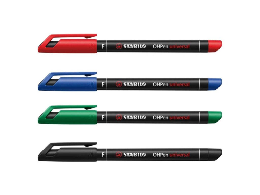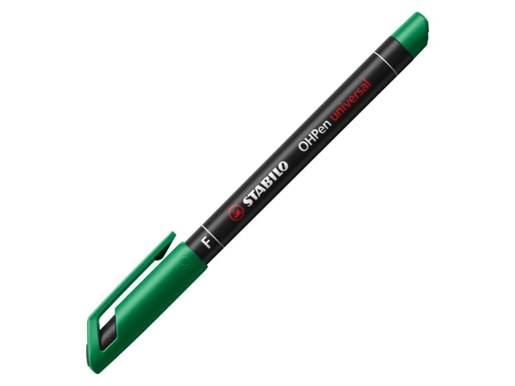 Permanentné popisovače na popisovanie takmer všetkých hladkých povrchov. Nekĺzavá úchytová zóna, praktický klip, bez vrchnáka vydrží až 3 dni. Väčšie balenie 10 ks v jednej farbe. STABILO® OHPen universal Fine (F). Hrot okrúhly, šírka stopy 0,7 mm. Farba zelená.