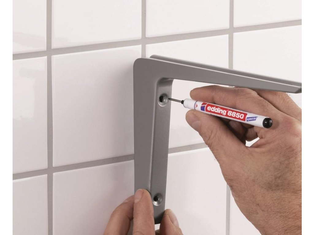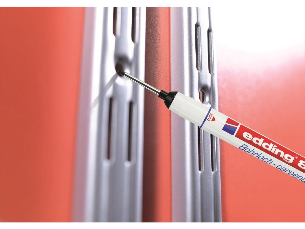 Permanentný popisovač s extra dlhým a tenkým hrotom určený na označovanie ťažko prístupných miest (napr. dier pri vŕtaní). Hrot v kovovej objímke, šírka stopy 1 mm.