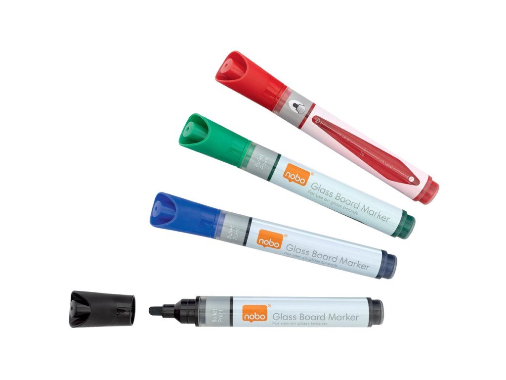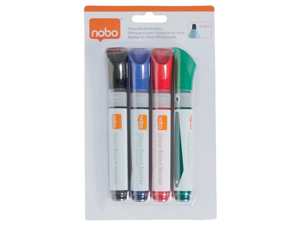 Popisovače Nobo na sklenené tabule s okrúhlym hrotom, balenie 4 ks, mix farieb