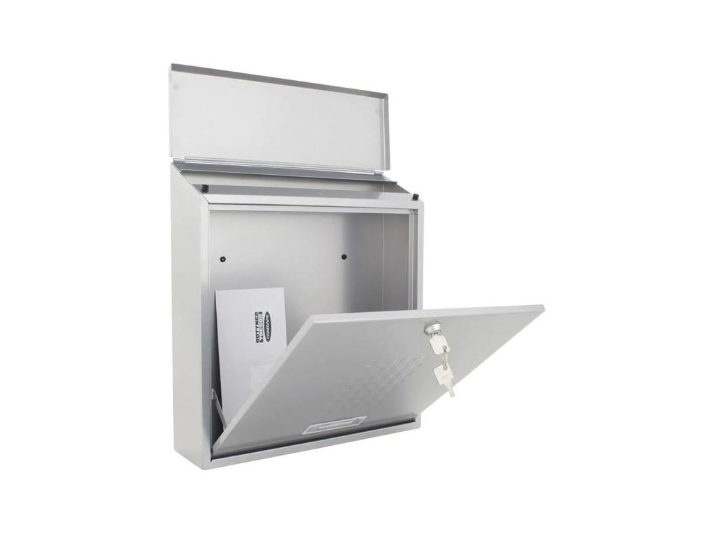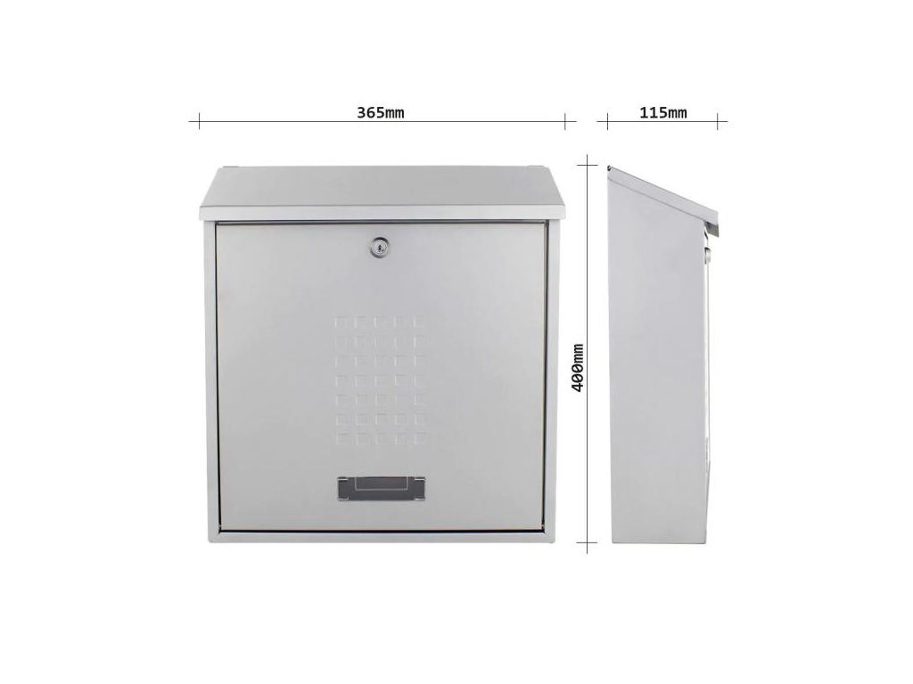 Klasická poštová schránka ponúka minimalistický dizajn a menovku v spodnej časti. Horný vhodzový otvor je ideálny pre poštu do veľkosti max. A4. Kvalitné spracovanie z pozinkovaného plechu odolá poveternostným vplyvom a hrdzaveniu, aj preto je vhodná do exteriéru. Poštu jednoducho vyberiete pomocou veľkých predných dvierok, ktoré jednoducho odklopíte smerom nadol. Doručenú poštu tak rýchlo a jednoducho vyberiete a schránku opäť môžete uzamknúť. V zadnej stene sú pripravené otvory na upevnenie na stenu. Upevňovací materiál je súčasťou dodávky.