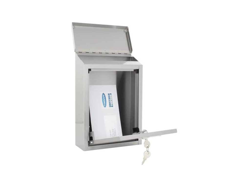 Klasický tvar poštovej schránky vyrobený z nehrdzavejúcej ocele doplnený o tri malé okienka, ktoré ukážu, či už vaša pošta dorazila. Horný otvor pre vhadzovanie pošty je široký pre poštu do veľkosti A4. Zároveň je krytý strieškou, ktorá zabráni neželanému vnikaniu vody a nešistôt do schránky. Samozrejmosťou je menovka spolu s priloženým upevňovacím materiálom, aby ste si mohli schránku hneď po obdržaní primontovať na stenu.