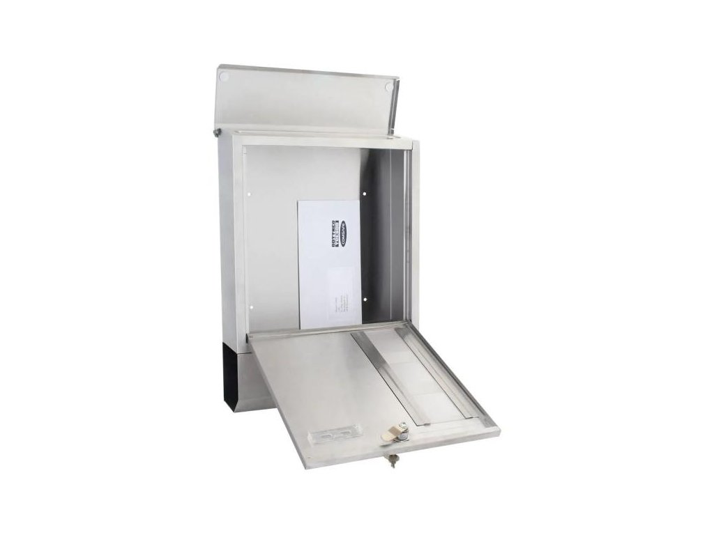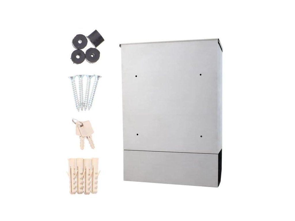 Poštová schránka z nerezu zaujme už na prvý pohľad svojim moderným dizajnom a precíznym spracovaním. Kvalitný cylindrický zámok spolu s 2 kľúčmi, menovka a priehľadné okienka, aby ste vždy mali jasný prehľad, či na vás čaká zásielka alebo nie. Do vnútra schránky je možné vhodiť zásielky veľkosti A4. Pre vhodenie pošty slúži vrchná štrbina, ktorá má krytku, aby sa vašim zásielkam nič nestalo. Noviny si nájdu svoje miesto v samostatnej dolnej priehradke. Potrebný materiál pre upevnenie na stenu je súčasťou balenia.