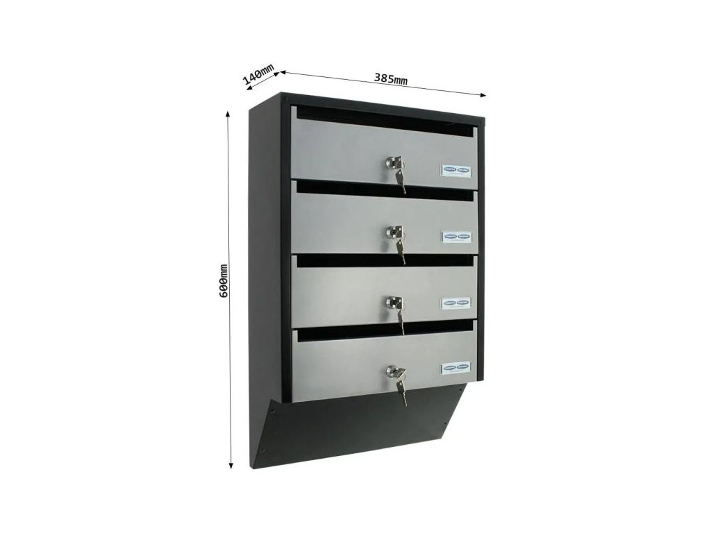 Poštová schránka Depot 4 strieborná/čierna, v.27 x š.38 x h.60 cm