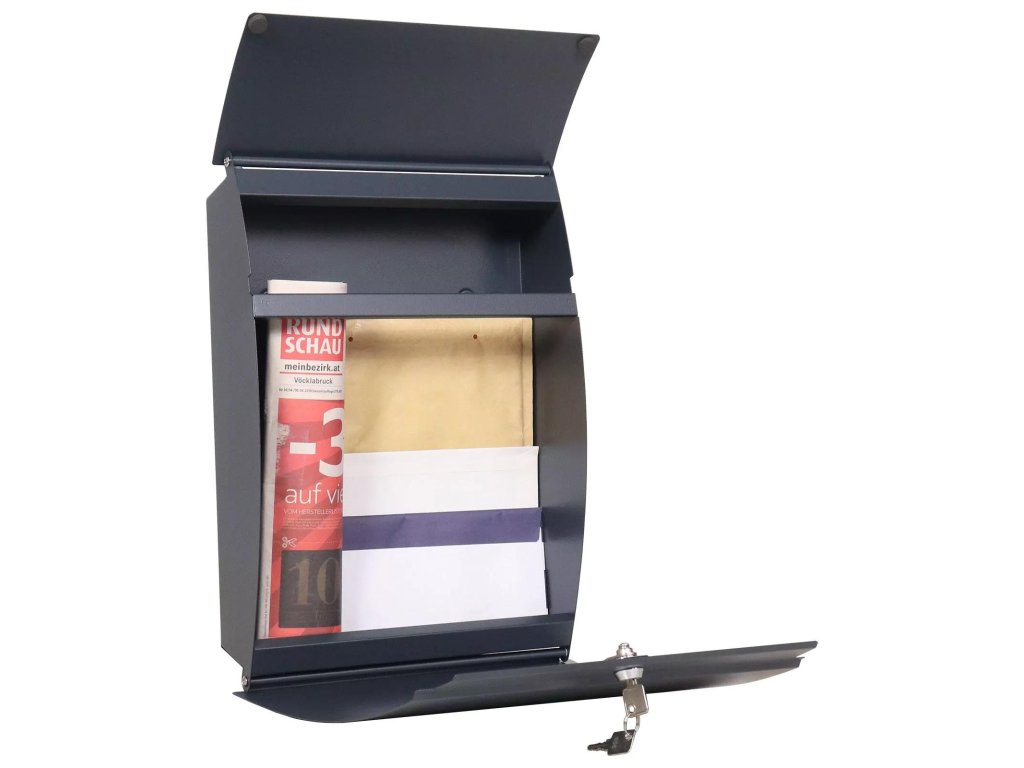 Antracitová poštová schránka z modelovej rady Harrow ponúka čisté línie a naozaj moderný vzhľad. Oblá predná čast v sebe ukrývy predný vhod a aj dvierka pre výber pošty. Prístup k doručenej pošte je naozaj jednoduchý. Pred neželaním vniknutím do schránky chráni klasický cylindrický zámok. Schránka nemá menovku, aby jej čisté línie ostali zachované a neporučené. Na zadnej strane sú pripravené otvory na upevnenie. Materiál na upevnenie je súčasťou dodávky.