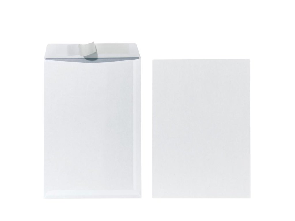 Biele obálky rozmerov 229 × 324 mm z papiera hrúbky 90 g / m². S odtrhávacou páskou, otvor na kratšej strane. Balenie 10 ks. Farba biela.