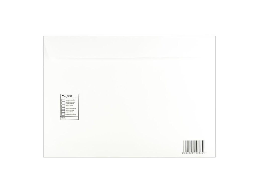 Biele papierové obálky C4 doporučene rozmerov 229 x 324 mm mm, 100 g s odtrhávacou silikónovou páskou.