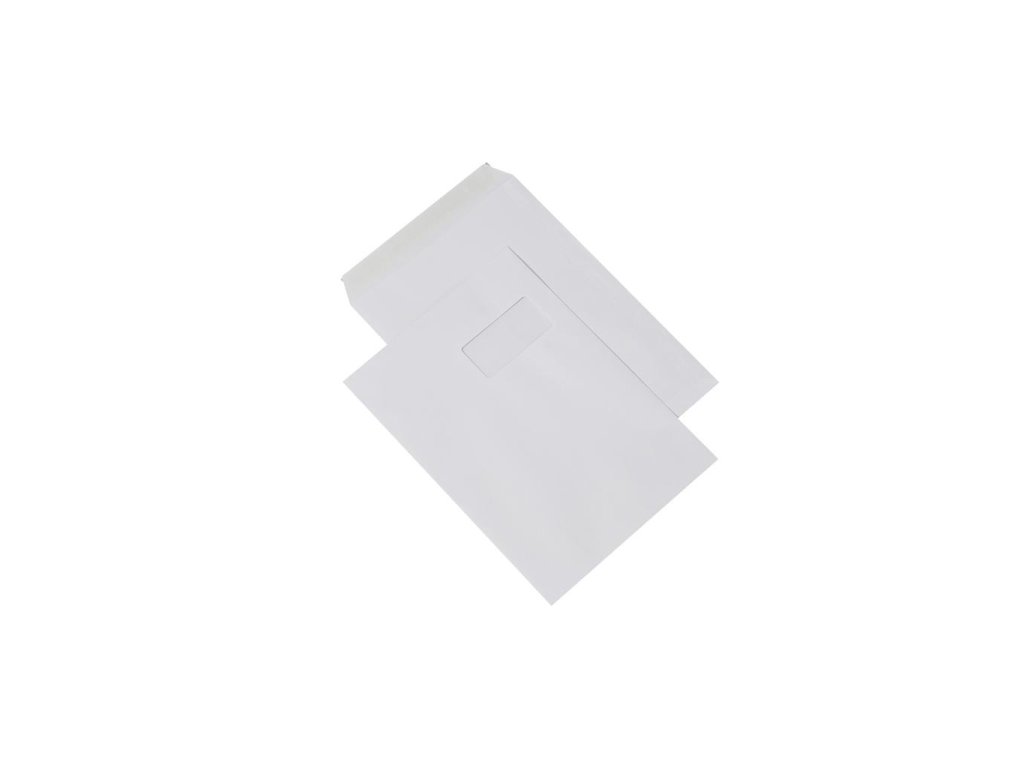 Biele obálky rozmerov 229 × 324 mm, vyrobené z bezdrevného papiera,90 g/ m2. S okienkom a odtrhávacou páskou, otvor na kratšej strane.Nie sú vhodné do laserovej tlačiarne.