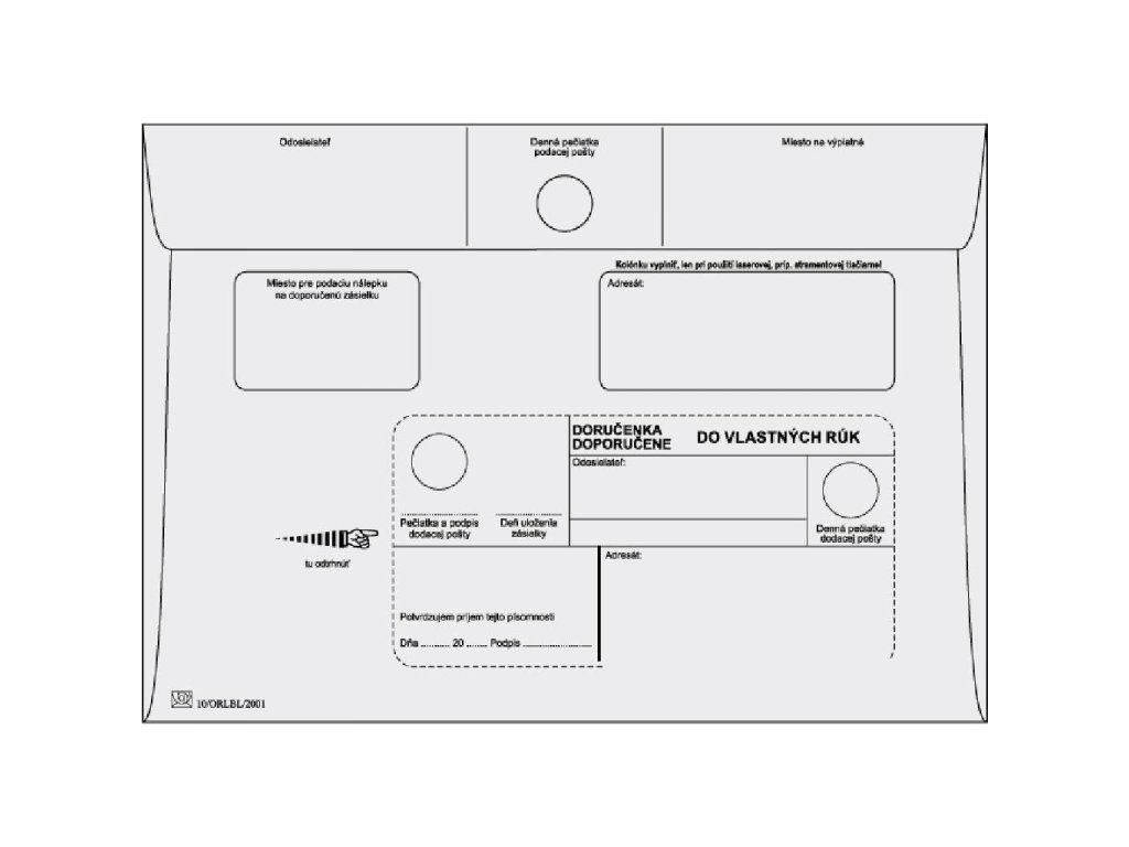 Biele papierové poštové obálky C5 s doručenkou do vlastných rúk - bez opakovaného doručenia rozmerov 162 × 229 mm s okienkom, popisom a lichobežníkovou klopou, 90 g/ m2. Balenie obsahuje 1000 ks.