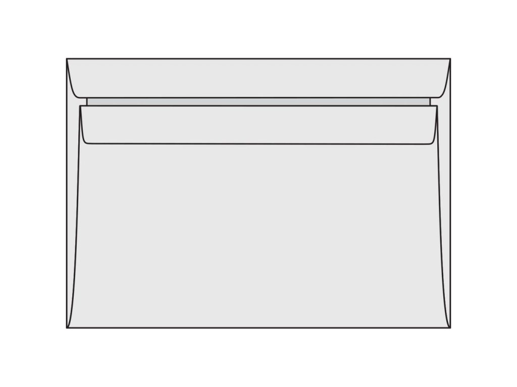 Biele obálky rozmeru 114 × 162 mm, vyrobené z bezdrevného papiera, 80 g/ m2. Samolepiace.