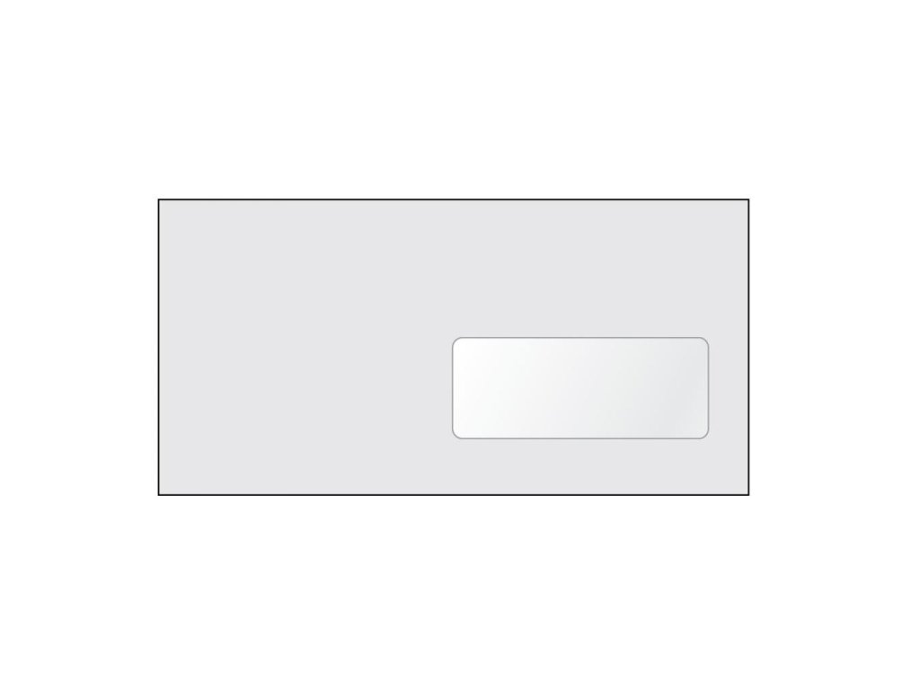 Biele obálky rozmeru 110 × 220 mm, vyrobené z bezdrevného papiera, 80 g/ m2. Samolepiace s okienkom z priehľadnej fólie vpravo.
