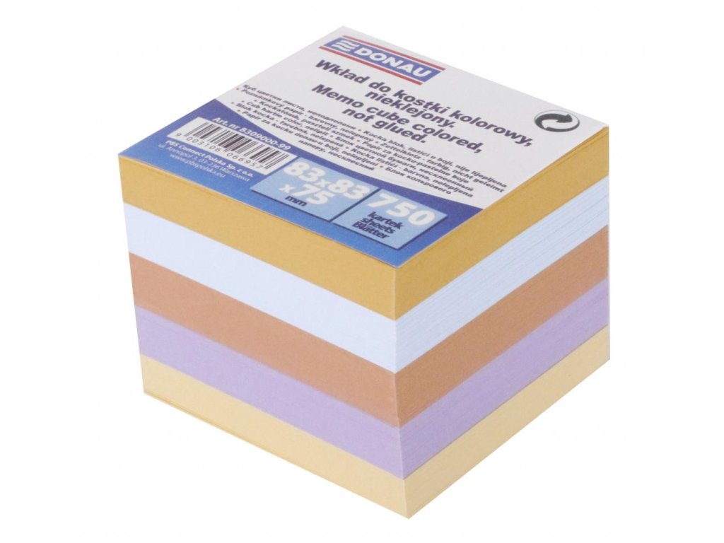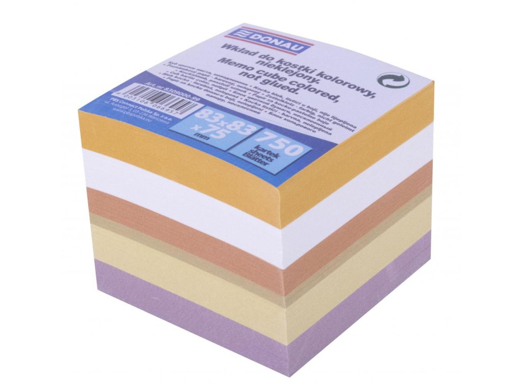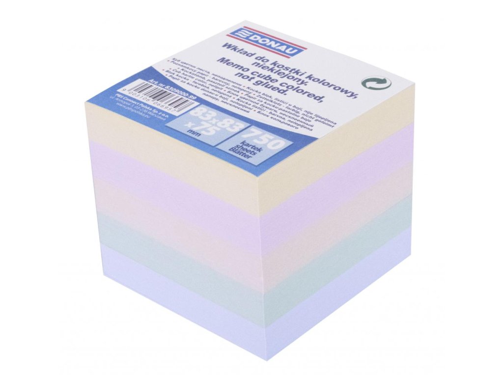Farebné (pastelové farby) nelepené poznámkové bloky v tvare kocky. Vhodný ako samostatné poznámkové bloky alebo ako náplň do škatuľky DO491001.