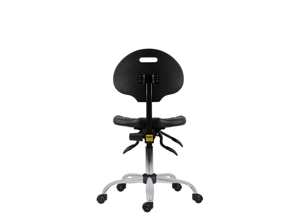 • pracovná otočná PU stolička s plne antistatickými ESD účinkami konštruovaná tak, aby odvádzala statickú elektrinu z pracoviska s prítomnosťou elektronických komponentov a prchavých chemikálií