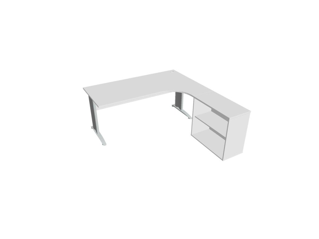 Pracovný stôl Cross, ergo, ľavý, 180x75,5x200 cm, biela/kov