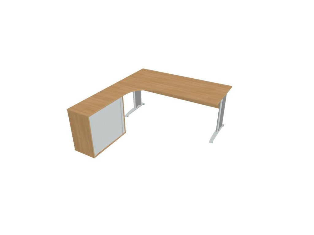 Pracovný stôl Cross, ergo, pravý, 180x75,5x200 cm, dub/kov