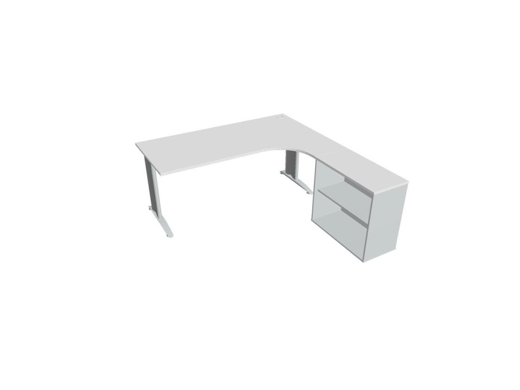 Pracovný stôl Flex, ergo, ľavý, 180x75,5x200,0 (80x40) cm, biela/kov