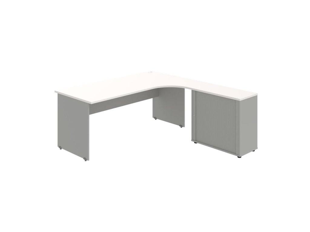 Pracovný stôl Gate, ergo, ľavý, 180x75,5x200 cm, biela/sivá