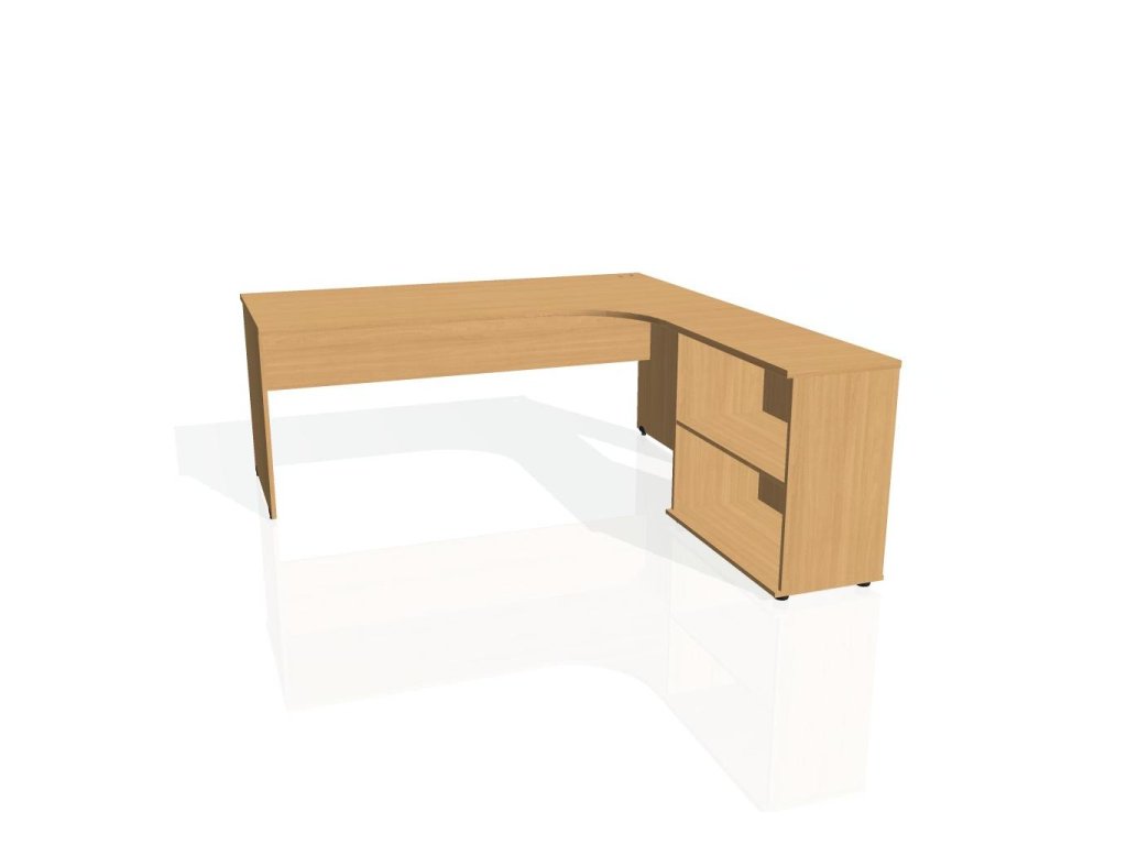 Pracovný stôl Gate, ergo, ľavý, 180x75,5x200 cm, buk/buk