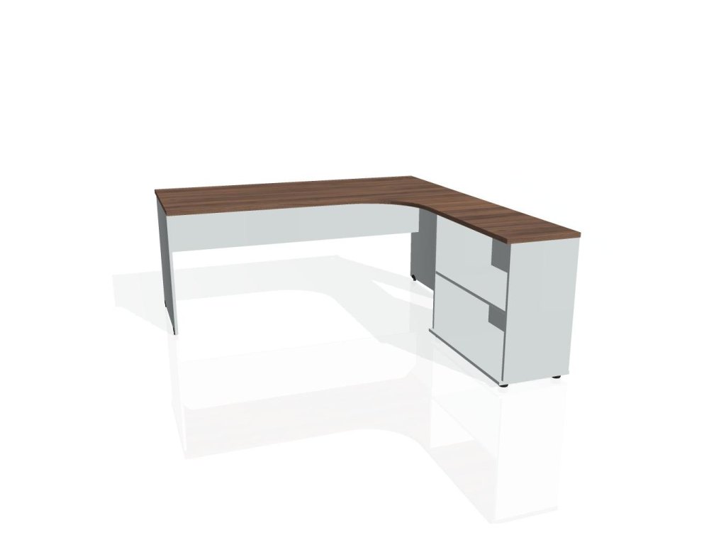 Pracovný stôl Gate, ergo, ľavý, 180x75,5x200 cm, orech/sivá